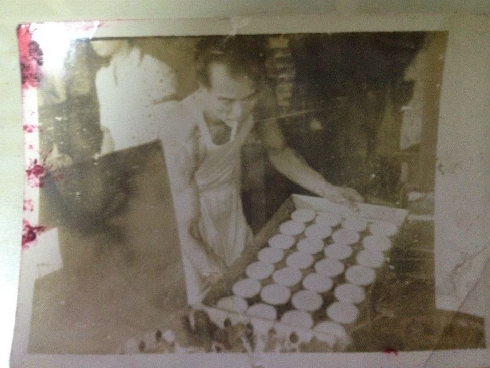 阿公以從事製作家中的豆沙餅,來聊慰思鄉之情。